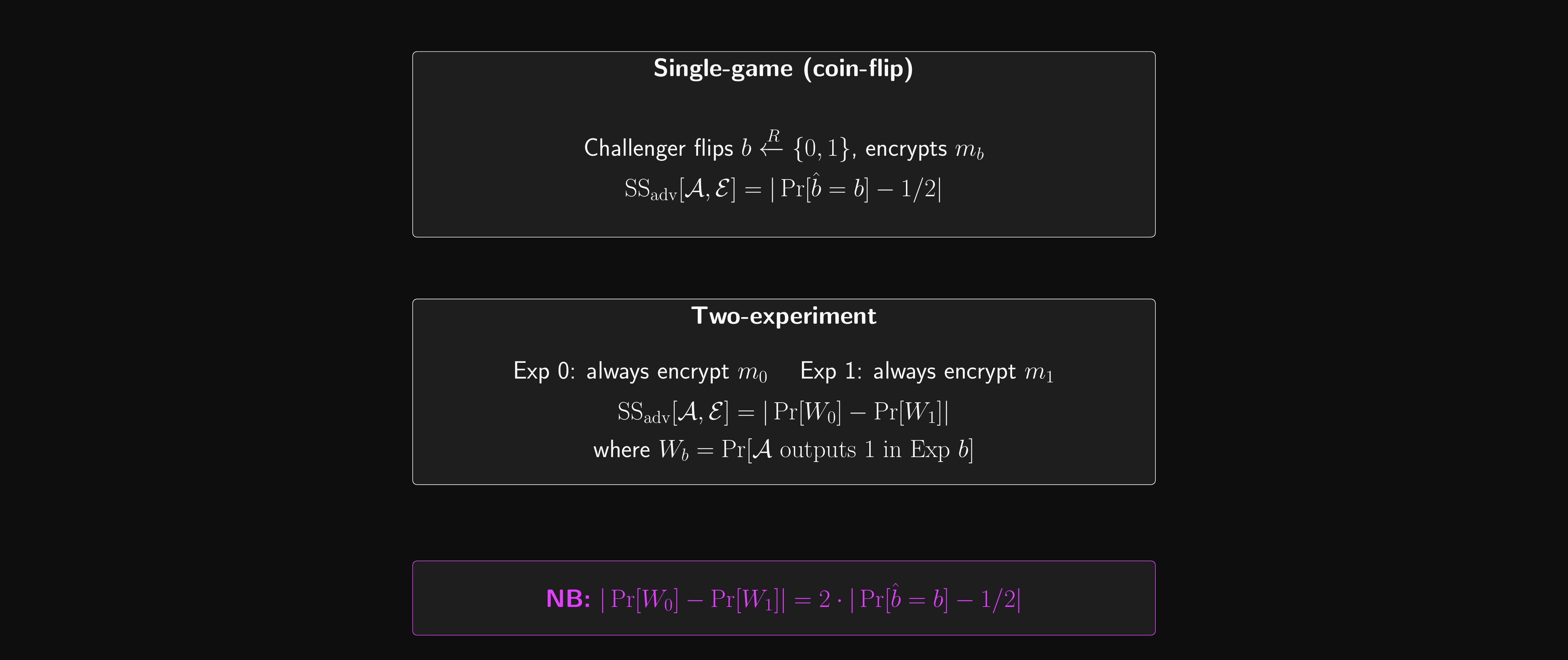 Semantic Security: Two-Experiment Form